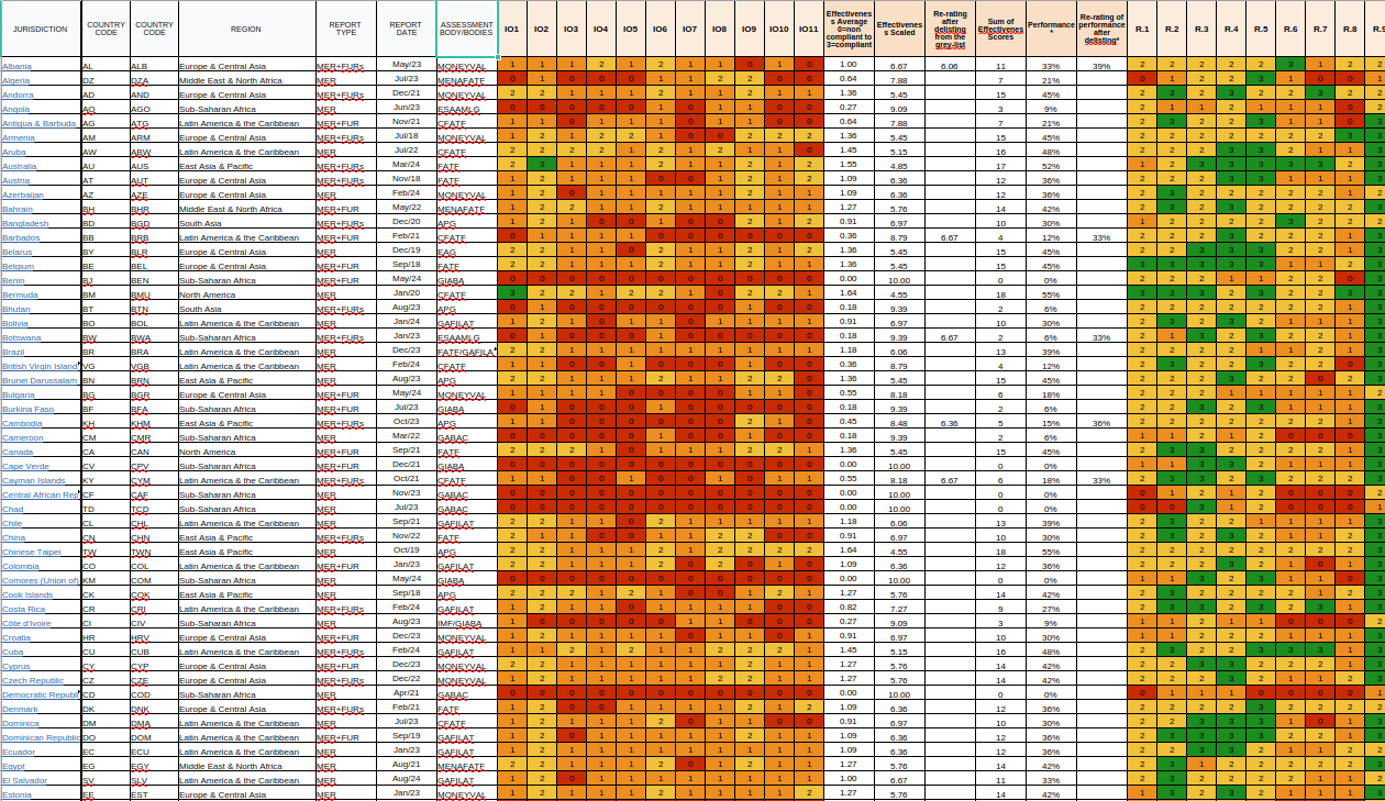 The downloadable spreadsheet shows the FATF ratings (Compliant, Largely Compliant, Partially Compliant, Non-Compliant) converted into a numerical, colour-coded scale from 0 to 3.